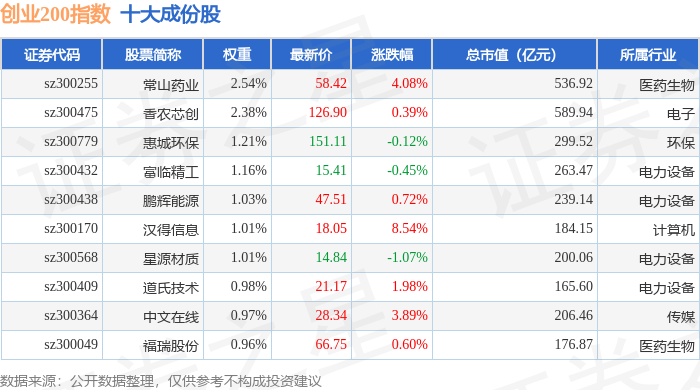 资金流向方面,创业200(399019)指数成份股当日主力资金净流出合计16.81亿元,游资资金净流入合计2.11亿元,散户资金净流入合计14.71亿元。成份股资金流向详情见下表: