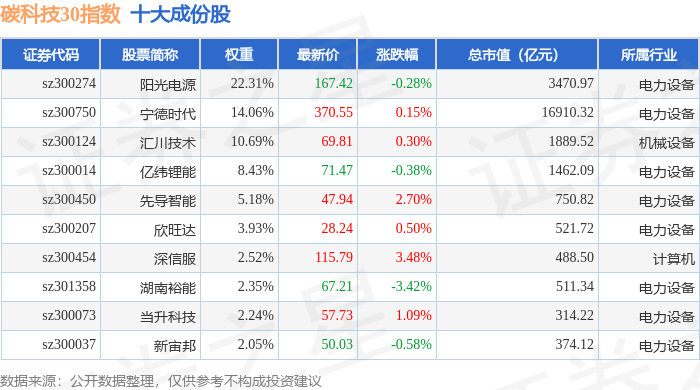 资金流向方面,碳科技30(399030)指数成份股当日主力资金净流出合计4.45亿元,游资资金净流入合计4.62亿元,散户资金净流出合计1651.26万元。成份股资金流向详情见下表: