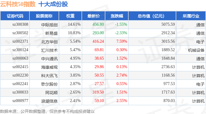 资金流向方面,云科技50(399279)指数成份股当日主力资金净流出合计16.13亿元,游资资金净流入合计8.62亿元,散户资金净流入合计7.51亿元。成份股资金流向详情见下表: