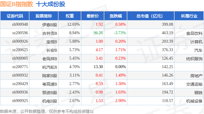 证券之星消息,11月24日,国证B指(399318)指数报收于5117.92点,涨0.4%,成交2.23亿元,换手率0.19%。当日该指数成份股中,上涨的有56家,海立B股以6.0%的涨幅领涨,下跌的有16家,深中华B以10.0%的跌幅领跌。