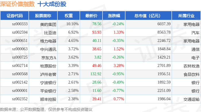 证券之星消息,11月24日,深证价值(399348)指数报收于6250.24点,涨0.31%,成交616.92亿元,换手率0.88%。当日该指数成份股中,上涨的有57家,科伦药业以4.0%的涨幅领涨,下跌的有42家,永兴材料以5.86%的跌幅领跌。