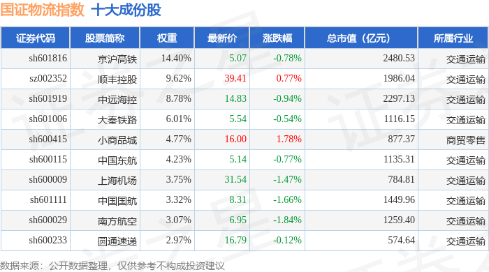 国证物流(399353)指数十大成份股详情如下: