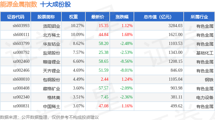 能源金属(399366)指数十大成份股详情如下: