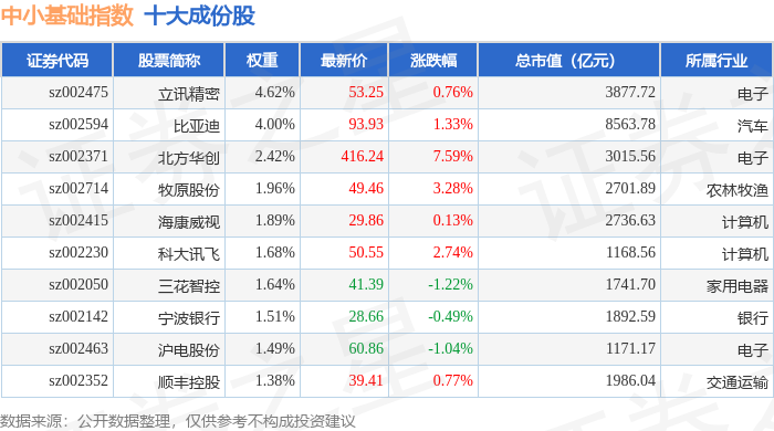 中小基础(399623)指数十大成份股详情如下: