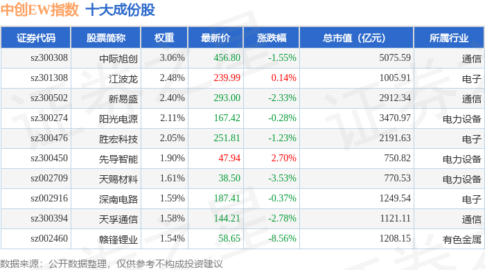 证券之星消息,11月24日,中创EW(399660)指数报收于2531.13点,跌0.06%,成交1927.31亿元,换手率1.33%。当日该指数成份股中,上涨的有60家,北方华创以7.59%的涨幅领涨,下跌的有39家,赣锋锂业以8.56%的跌幅领跌。