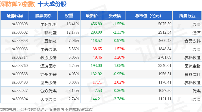 证券之星消息,11月24日,深防御50(399671)指数报收于9106.09点,涨0.11%,成交841.68亿元,换手率2.85%。当日该指数成份股中,上涨的有32家,蓝色光标以15.72%的涨幅领涨,下跌的有17家,海大集团以2.85%的跌幅领跌。