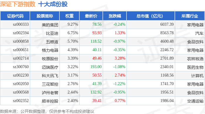 深证下游(399706)指数十大成份股详情如下: