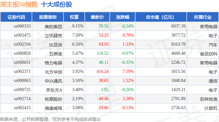 证券之星消息,11月24日,深主板50(399750)指数报收于8736.74点,涨0.59%,成交609.17亿元,换手率0.86%。当日该指数成份股中,上涨的有29家,北方华创以7.59%的涨幅领涨,下跌的有21家,荣盛石化以2.96%的跌幅领跌。