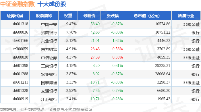 中证金融(399934)指数十大成份股详情如下: