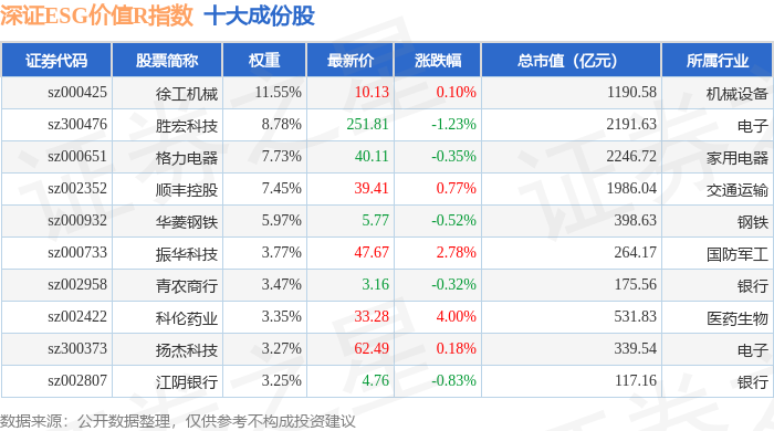 深证ESG价值R(470061)指数十大成份股详情如下: