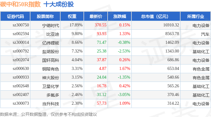 碳中和50R(480021)指数十大成份股详情如下: