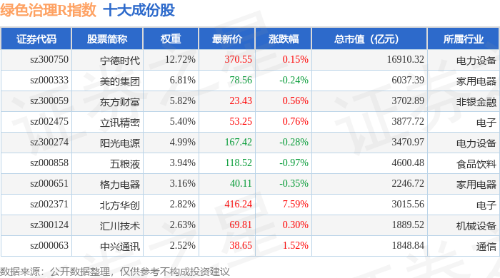 资金流向方面,绿色治理R(480058)指数成份股当日主力资金净流入合计3.42亿元,游资资金净流出合计8395.95万元,散户资金净流出合计2.58亿元。成份股资金流向详情见下表: