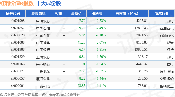 红利价值R(489016)指数十大成份股详情如下: