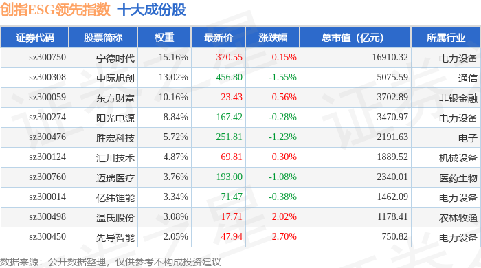 资金流向方面,创指ESG领先(970031)指数成份股当日主力资金净流出合计21.0亿元,游资资金净流入合计17.35亿元,散户资金净流入合计3.66亿元。成份股资金流向详情见下表: