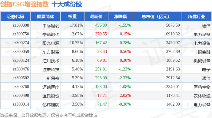 资金流向方面,创指ESG增强(970034)指数成份股当日主力资金净流出合计39.44亿元,游资资金净流入合计23.44亿元,散户资金净流入合计16.0亿元。成份股资金流向详情见下表: