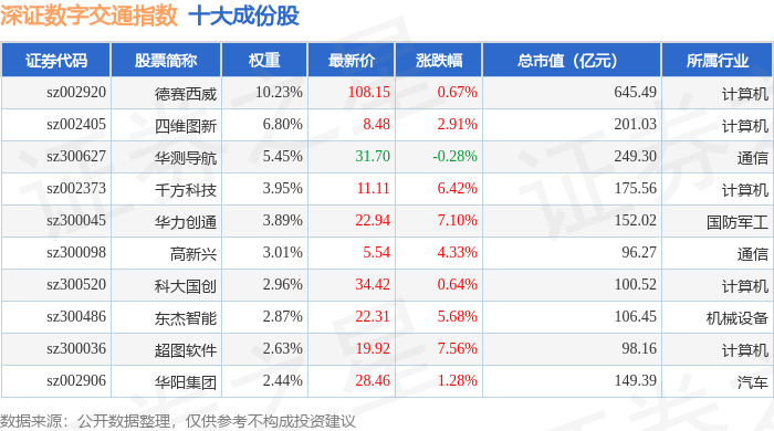 深证数字交通(970049)指数十大成份股详情如下: