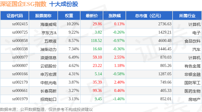 深证国企ESG(970055)指数十大成份股详情如下: