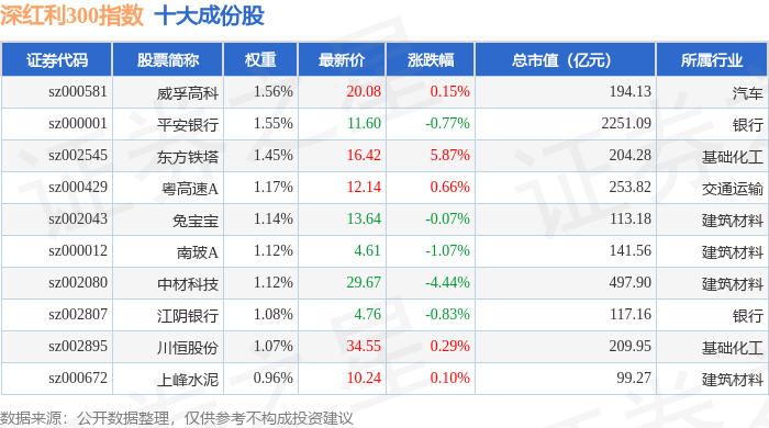 深红利300(970062)指数十大成份股详情如下:
