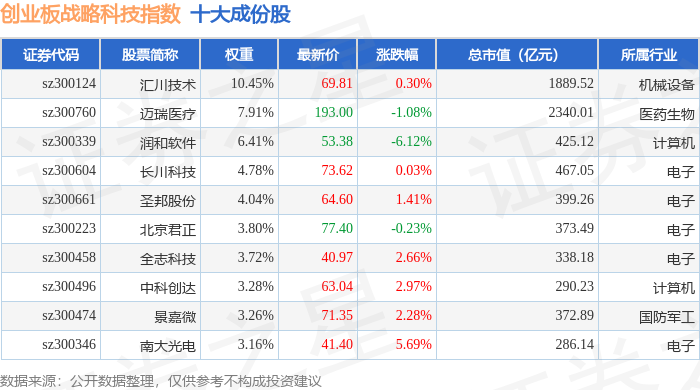 证券之星消息,11月24日,创业板战略科技(971004)指数报收于5966.98点,涨1.04%,成交338.04亿元,换手率4.58%。当日该指数成份股中,上涨的有42家,晨曦航空以14.13%的涨幅领涨,下跌的有7家,润和软件以6.12%的跌幅领跌。