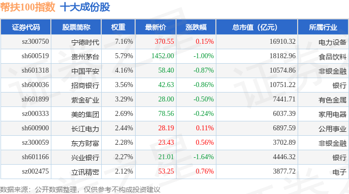 资金流向方面,帮扶100(980065)指数成份股当日主力资金净流出合计37.59亿元,游资资金净流入合计10.85亿元,散户资金净流入合计26.74亿元。成份股资金流向详情见下表: