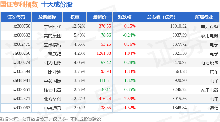 证券之星消息,11月24日,国证专利(980070)指数报收于3500.68点,涨0.75%,成交1397.32亿元,换手率1.0%。当日该指数成份股中,上涨的有73家,广汽集团以10.0%的涨幅领涨,下跌的有27家,芯原股份以3.19%的跌幅领跌。