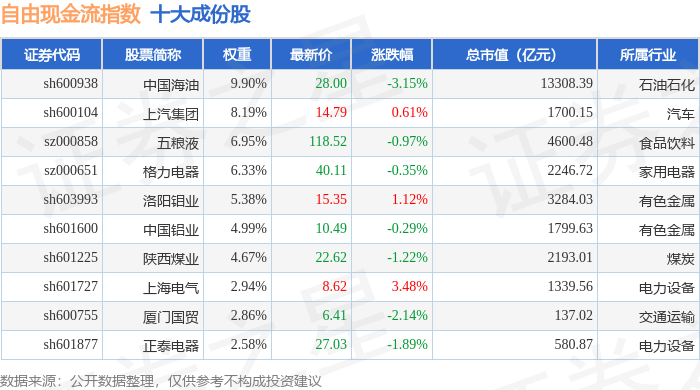 资金流向方面,自由现金流(980092)指数成份股当日主力资金净流出合计1.53亿元,游资资金净流入合计3994.11万元,散户资金净流入合计1.13亿元。成份股资金流向详情见下表: