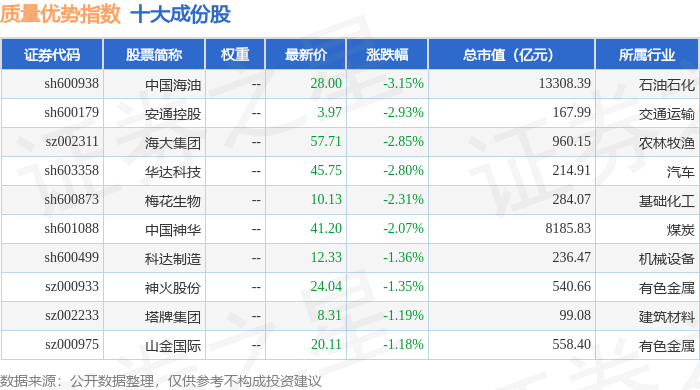 资金流向方面,质量优势(989017)指数成份股当日主力资金净流出合计1.72亿元,游资资金净流出合计3.49亿元,散户资金净流入合计5.22亿元。成份股资金流向详情见下表: