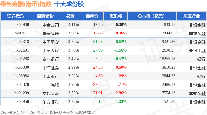 绿色金融(港币)(980053)指数十大成份股详情如下:
