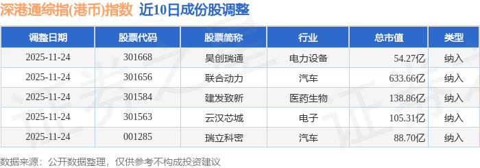 近10日内深港通综指(港币)(983006)指数成份股做了调整,新纳入了5只股票。