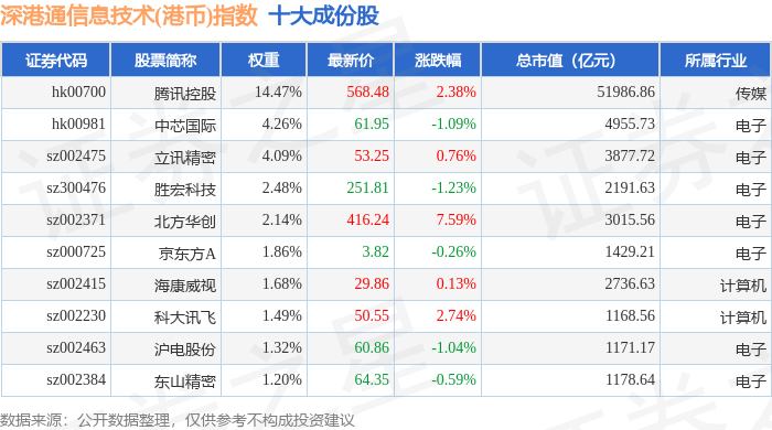 深港通信息技术(港币)(983028)指数十大成份股详情如下: