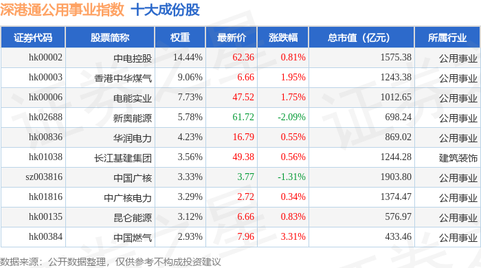 证券之星消息,11月24日,深港通公用事业(983031)指数报收于4405.53点,涨0.31%,成交96.11亿元,换手率0.59%。当日该指数成份股中,上涨的有30家,赫美集团以10.14%的涨幅领涨,下跌的有32家,川能动力以7.11%的跌幅领跌。
