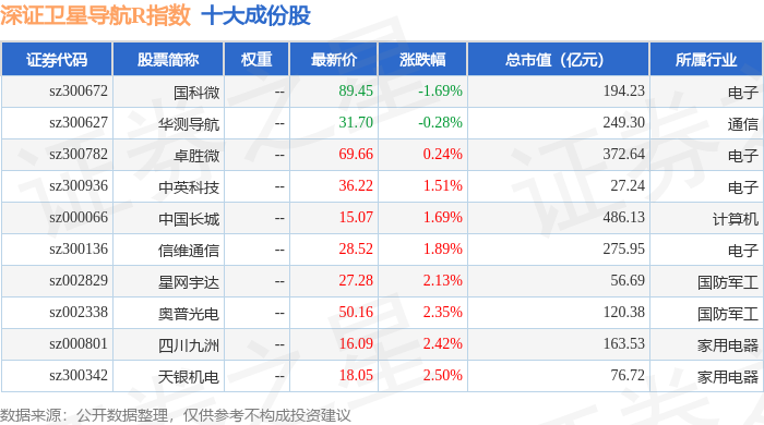 深证卫星导航R(470050)指数十大成份股详情如下: