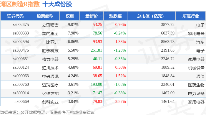 证券之星消息,11月24日,湾区制造R(480009)指数报收于5460.49点,涨0.79%,成交862.15亿元,换手率2.16%。当日该指数成份股中,上涨的有82家,广汽集团以12.03%的涨幅领涨,下跌的有16家,和而泰以9.65%的跌幅领跌。