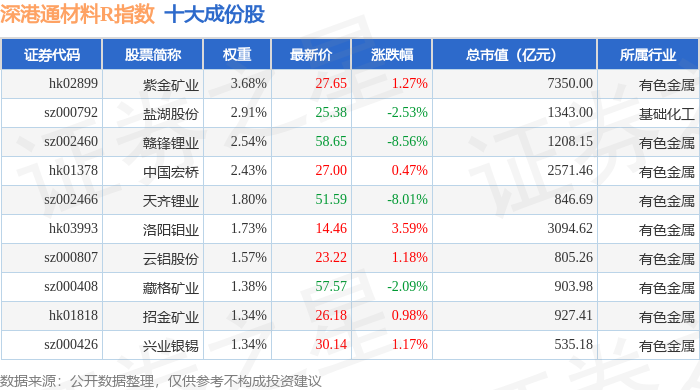 深港通材料R(483015)指数十大成份股详情如下: