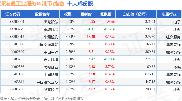 深港通工业服务R(港币)(483056)指数十大成份股详情如下: