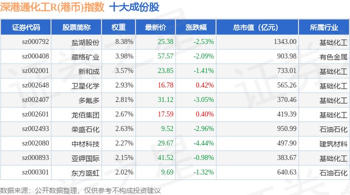 深港通化工R(港币)(483064)指数十大成份股详情如下: