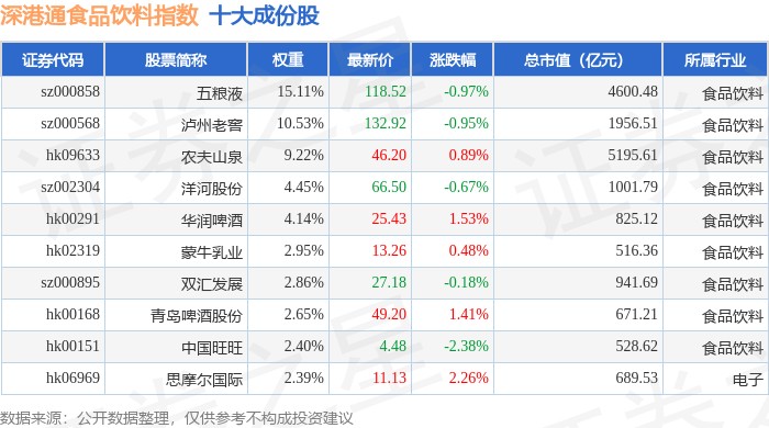 深港通食品饮料(983065)指数十大成份股详情如下: