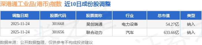 近10日内深港通工业品(港币)(983070)指数成份股做了调整,新纳入了2只股票。