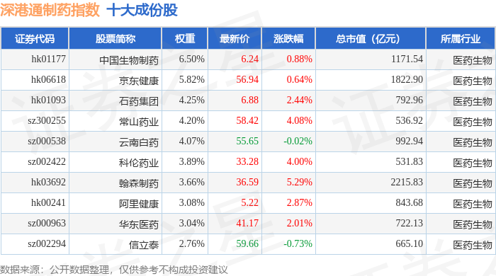 资金流向方面,深港通制药(983079)指数成份股当日主力资金净流出合计4.04亿元,游资资金净流出合计1.63亿元,散户资金净流入合计5.67亿元。成份股资金流向详情见下表: