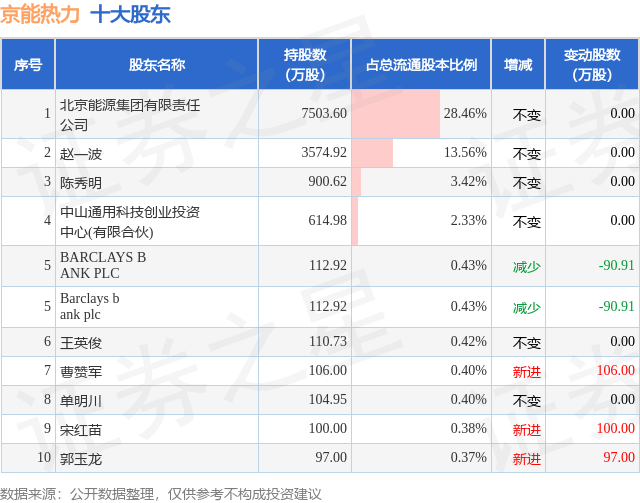 根据京能热力2025年三季报公布的十大股东详情如下: