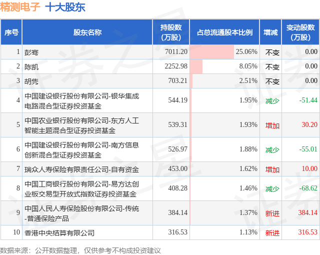 根据精测电子2025年三季报公布的十大股东详情如下: