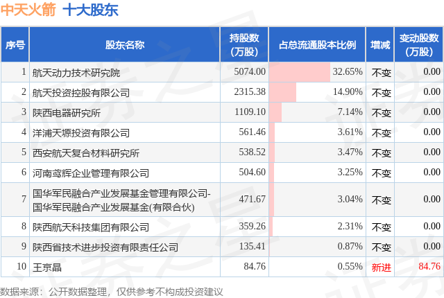 根据中天火箭2025年三季报公布的十大股东详情如下: