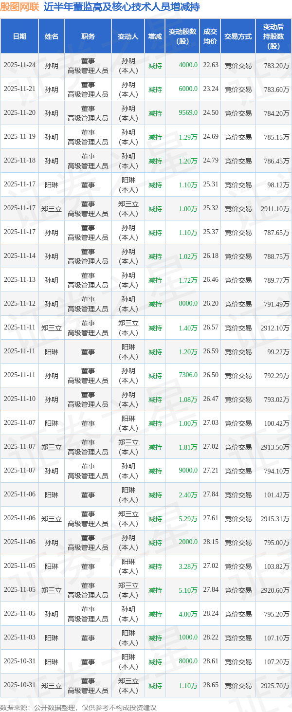 殷图网联近半年内的董监高及核心技术人员增减持详情如下: