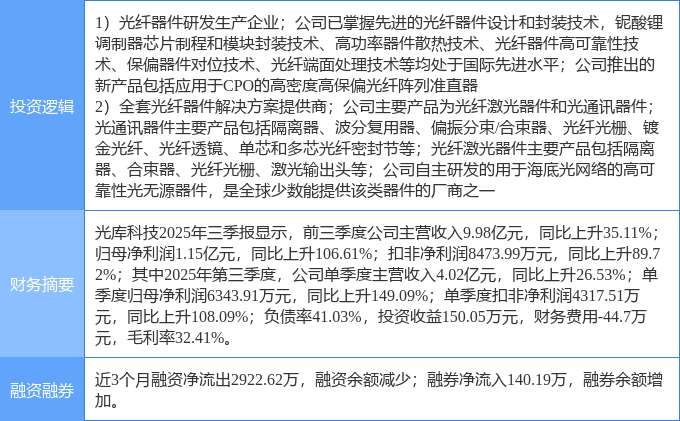 该股为光电共封装CPO,光通信,光纤概念概念热股,当日光电共封装CPO概念上涨5.88%,光通信概念上涨4.64%,光纤概念概念上涨4.61%。