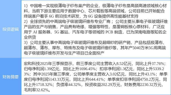 该股为玻纤,PCB板,6G概念热股,当日玻纤概念上涨4.5%,PCB板概念上涨2.74%,6G概念上涨2.71%。