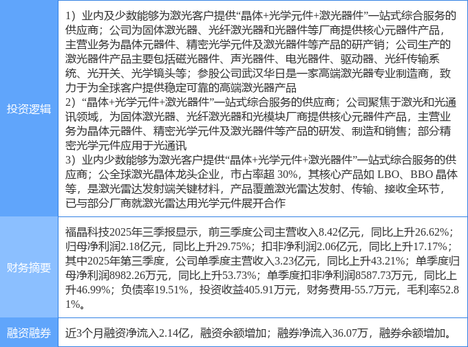 该股为光通信,激光,激光雷达概念热股,当日光通信概念上涨4.64%,激光概念上涨3.36%,激光雷达概念上涨2.77%。