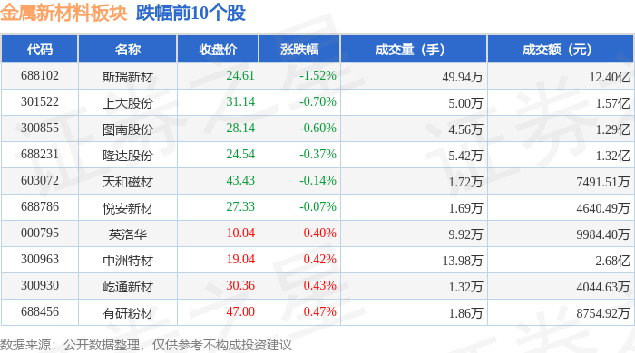 证券之星消息,11月25日金属新材料板块较上一交易日上涨1.97%,龙磁科技领涨。当日上证指数报收于3870.02,上涨0.87%。深证成指报收于12777.31,上涨1.53%。金属新材料板块个股涨跌见下表: