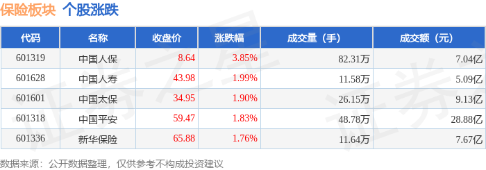 证券之星消息,11月25日保险板块较上一交易日上涨2.17%,中国人保领涨。当日上证指数报收于3870.02,上涨0.87%。深证成指报收于12777.31,上涨1.53%。保险板块个股涨跌见下表:
