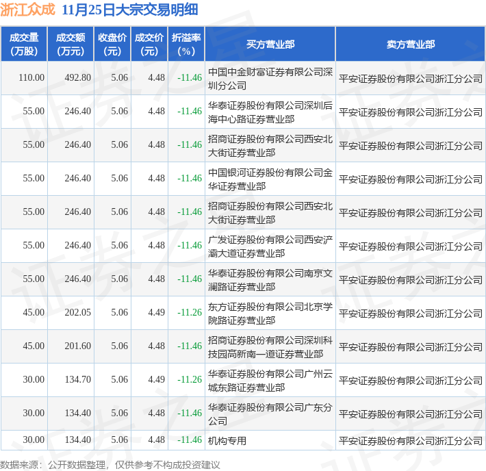 证券之星消息,11月25日浙江众成发生大宗交易,交易数据如下: