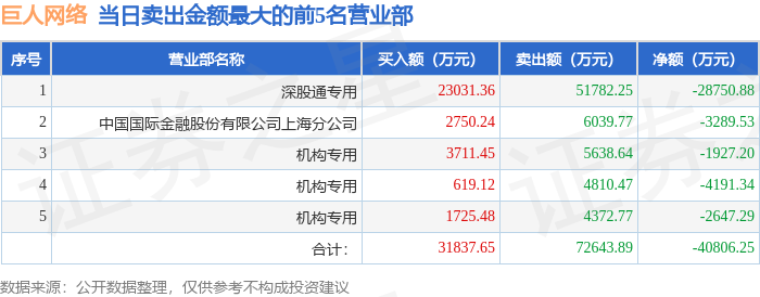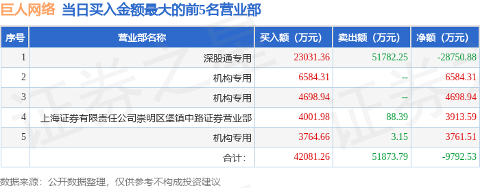 证券之星消息,沪深交易所2025年11月25日公布的交易公开信息显示,巨人网络(002558)因日涨幅偏离值达到7%的前5只证券登上龙虎榜。此次是近5个交易日内第1次上榜。